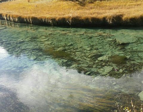 ...是景区观光车的终点,游览短线去珍珠海可以看到冲古草坪,秋季一片金黄色,非常漂亮,溪水也非常清澈
