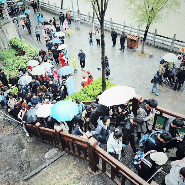 而我为了能够在本就拥挤的石阶上可以从容的行走或拍照,所以一路顶着雨,在游人之间穿梭而行,即使这...
