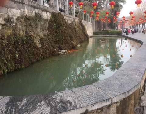 过了龙门桥的桥洞,便见到禹王池,其实它只是一个小水池,里里养了一些锦鲤,相传是为大禹治水而建的,也由于这个原因,就成为一个景点。