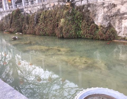 导游也说没啥好玩的!不过里面的水草很好看呐!就是一个水池子就是一个水池子!导游也说没啥好玩的!不过里面的水草很好看呐!油油的在水里飘摇,映着超级蓝色天空,旁边是石窟,我拍照技术不咋滴,拍不出那种美