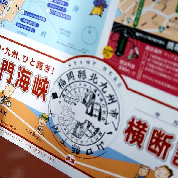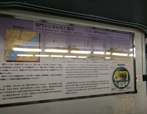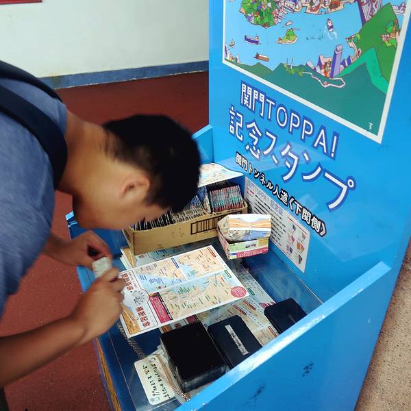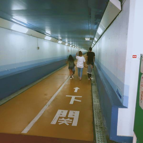 关门隧道是连结本州和九州的海底隧道。隧道分为两层, 上层供汽车通行, 下层供行人和脚踏车使用。隧道的车道全长3461公尺, 其中海底部分为780公尺。汽车通道的最低部在关门海峡的海面下56公尺, 而行人步道的最低部则在关门海峡的海面下58公尺。据说这应该是世界上第一条海底隧道。乘坐电梯到达人行入口大堂,取了一张关门海峡横断纪念明信片, 然后在上面盖章。盖章是半圆的, 在这边只可以盖一半,另外的一半要走到下关那边才盖; 如果位置准确, 便成为一个完整的圆盖章, 所以盖章时要小心哦!多么有心思的设计啊!开始往下关出发离开九州咯!!边走旁边就会有指标告诉你距离两侧有多远,慢慢走,13分钟可走完。隧道的中心处也是两个城市的交界处。一脚踏一个县,一脚踏一个州,哈哈,城里人会玩吧~走过来以后记得把纪念章盖全哦~ 展开