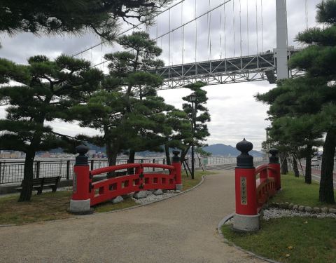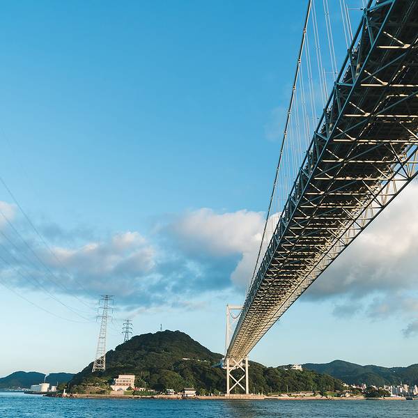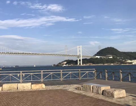 风景特别好。北九州到山口县要经过这座关门大桥。这里是西洋文化最早流传到日本地区的北九州到山口县要经过这座关门大桥。这里是西洋文化最早流传到日本地区的。这里附近的建筑都是西洋式的,很像神户的建筑。风景特别好。