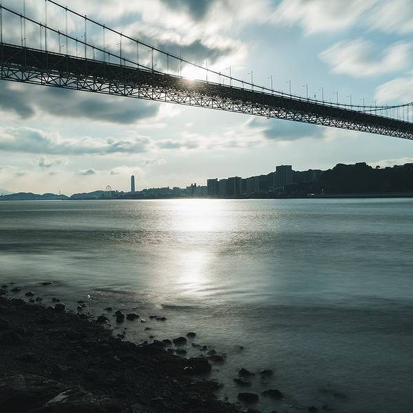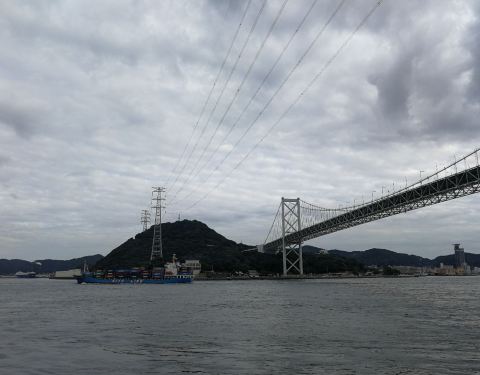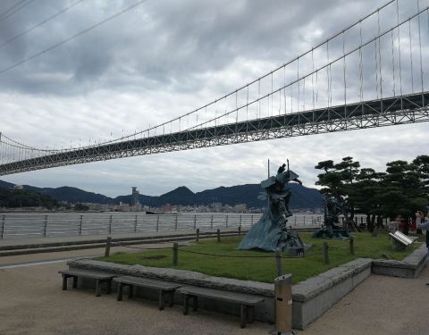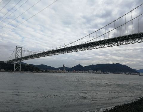 关门大桥连接着日本本州和九州,大桥非常壮观,造型漂亮关门大桥连接着日本本州和九州,大桥非常壮观,造型漂亮。去前看介绍说桥下水流湍急,有漩涡,但大概是我在岸上的关系吧,我看到的是碧绿的海水安静流淌,大桥静静横亘于上,美哉。