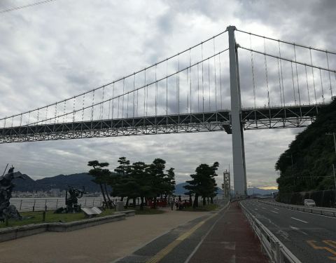 一路走到关门大桥。可以换取一张关门海峡横断纪念证书一路走到关门大桥。有一段距离。走海底隧道回到门司。