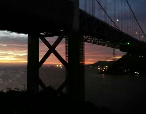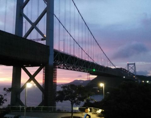 关门大桥是日本本州岛和九州岛连接的大桥,我凑巧是早上4点钟开车经过的,朝霞映衬在太平洋上,风景...关门大桥是日本本州岛和九州岛连接的大桥,我凑巧是早上4点钟开车经过的,朝霞映衬在太平洋上,风景甚是壮观,印象深刻,值得一去的好地方