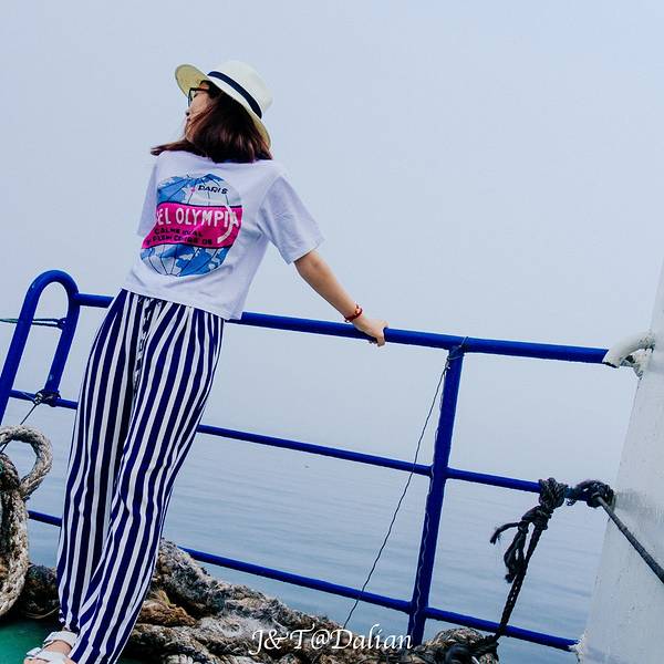 下午坐船出海欣赏奇石。坐小船往广鹿岛西南端航行,慢慢远处就出现两块立在海中的大石头。一块远远看去,像一个巨人站在海面,船长介绍说这是将军石。另一块叫人马石,但我和乔乔怎么看都觉得像一尊石狮子。靠近之后才发现这两块石头其实非常高大。在海浪起伏中欣赏奇石和天空中的大雁,直至夕阳缓缓落下,非常惬意。