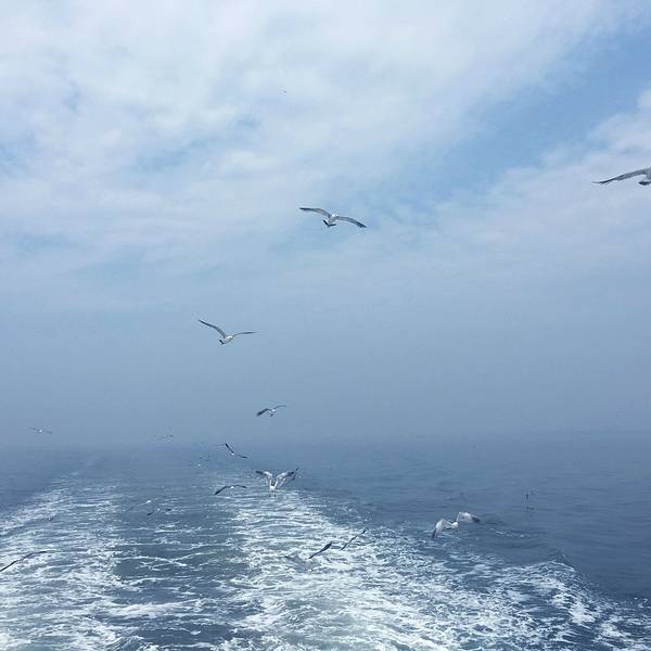 广鹿岛近在眼前~对面烟雾缭绕的小岛若隐若现,海面平静的仿佛有妖怪出没坐船时可以带一些面包来喂海鸥,行驶途中,会有成群的海鸥跟随着~