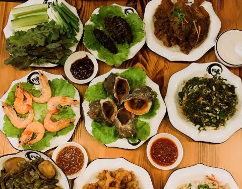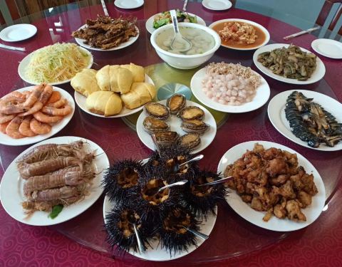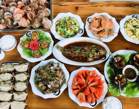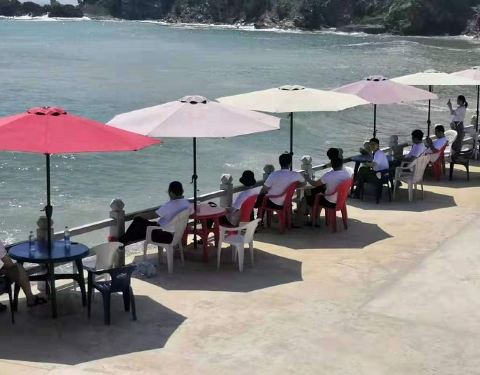 海鲜吃到饱 离海不超过十米 值得推荐的是他家二楼房间洗澡时可以看到海