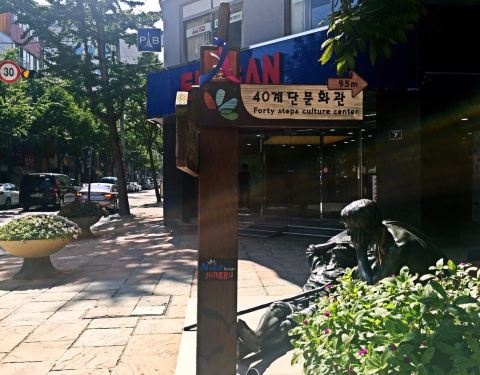 40台阶文化观光主题街,从国民银行中央东支行出发,经过40级台阶,到40台阶文化观光馆为止,是...40台阶文化观光主题街,从国民银行中央东支行出发,经过40级台阶,到40台阶文化观光馆为止,是一条长达450米的街道。 2017-03-07 12:22