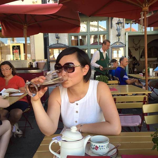 【国家歌剧院】的对面就是这家店,天气出乎意料的热,大小朋友都吃不消了,那就坐下不,来一杯慕尼黑的黑啤先~~