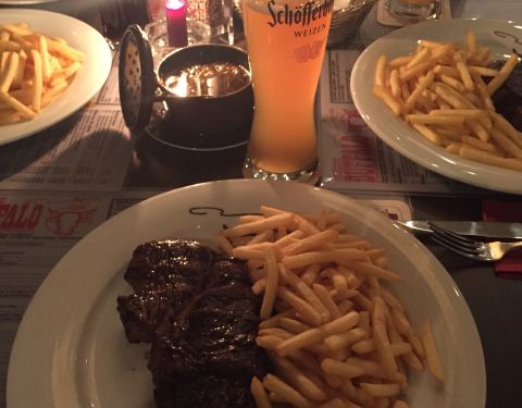 这是法兰克福当地知名度很高的一家牛排馆,菜肴是典型的南美风味。牛排品质出众,香嫩入味,搭配红酒令人十分享受。