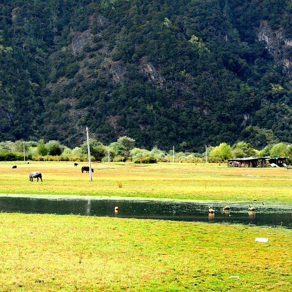 金骆驼 ...怀,村子里随处可见的是黑色的藏香猪,很特别的是这里的人家家户户都把狗关在屋子里,而放养的确实猪结巴村在巴松措景区内,本来没打算去看,路上的驴友强力推荐下去的,确实也没让我们失望。之前以为结巴村上因为当地人很多事口吃,后来才知道,原来结巴在藏族的意思是遗忘,非常诗情画意的名字,去过之后一个很...结巴村在巴松措景区内,本来没打算去看,路上的驴友强力推荐下去的,确实也没让我们失望。之前以为结巴村上因为当地人很多事口吃,后来才知道,原来结巴在藏族的意思是遗忘,非常诗情画意的名字,去过之后一个很难遗忘的地方。我们进入结巴村已经是中午饭点,无暇顾及村子的景色,一到见屋子的地方就下车敲门,问当地老乡有没有东西吃,村民非常热情,而且普通话也说的比较好,热情的给我们提供了青稞酒和麦饼,狼吞虎咽后才有精神和老乡说一会话,本想给点钱,结果被拒绝了,但是我们还是在老乡家住下来了,住宿费一行8人,5间房间仅收了1000元,吃了两顿饭外加不少特产。休息片刻后出门才真的领略到村上也是个世外桃源,远远就能看见雪峰,不远处有个辽阔的大湖,忘记叫什么了,湖水绿油油的。村子以及田埂到处都装点着野花,空气自然也是好得不得了,跟其他村落不一样的是,这里当地人很多,还建有幼儿园,幼儿园的老师还有汉族人,教授的时候用的还是普通话。除了自然美景,当地的特色也让人难以忘怀,村子里随处可见的是黑色的藏香猪,很特别的是这里的人家家户户都把狗关在屋子里,而放养的确实猪。家家户户都有一个很大的围墙,而砌起围墙的东西竟然是一排排看着坚固无比的柴火,非常特别。另外村子有个观景台,可以看到整个村子的景色,一定得去看看哦。