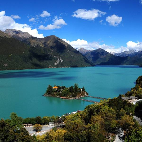 巴松措湖边有一个藏式风情小村,叫结巴村,是游巴松必去的景点,景区大巴直接可到达巴松措湖边有一个藏式风情小村,叫结巴村,是游巴松必去的景点,景区大巴直接可到达。碧绿的湖,高山环绕,树林间,一座藏式民居,登高望去,恬静,就象一个世外桃源。