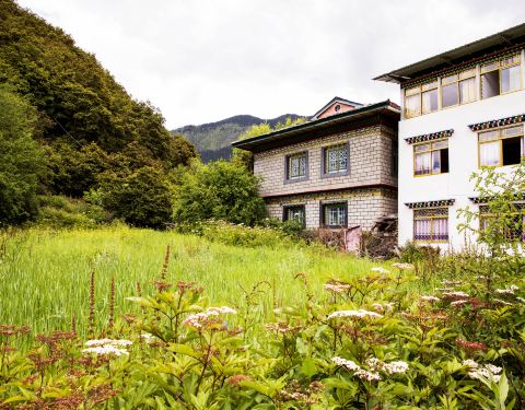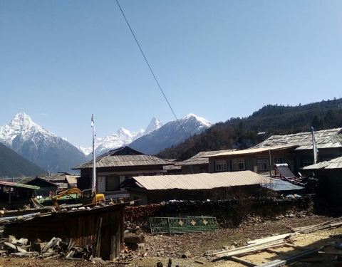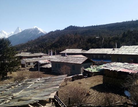 风景很美 站在小楼后面的阳台望出去就是雪山 早上雾气缭绕的 很美