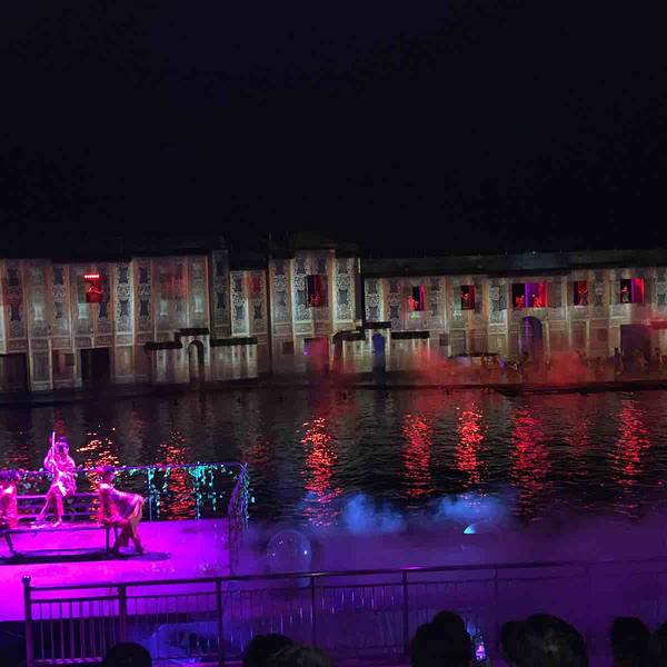 实用 非常具有观赏性的一场表演。这次没想到在宏村这个小山村也有如此规模的演出,倒是颇出乎我的意料每到一地去旅游观光,总是喜欢去购票看一场当地的文化演出,虽然价格不菲但却乐此不疲。虽说是作秀的成分更多,但能够在短时间内迅速直观的了解一下当地的民俗特色,何乐而不为?看过了桂林张艺谋导演的实景演出...每到一地去旅游观光,总是喜欢去购票看一场当地的文化演出,虽然价格不菲但却乐此不疲。虽说是作秀的成分更多,但能够在短时间内迅速直观的了解一下当地的民俗特色,何乐而不为?看过了桂林张艺谋导演的实景演出巜印象刘三姐》,武汉的巜汉秀》,张家界天门山的《天门狐仙》等等,各有秋千吧!这次没想到在宏村这个小山村也有如此规模的演出,倒是颇出乎我的意料。旅社老板给联系的专人来回包车服务加门票,价格为100元/人,不包车90元,表演每晚7:30正式开始,司机大哥7点左右就在两棵大树的村口接我们上车,大慨十分钟车程就到达目的地了。自己寻位置入座,根据网友经验,前面四排不能坐,演出降雨会淋湿衣服,表演准时开播,灯光布景音响效果都挺棒,故事情节中更是穿插水上摩托飚车,高空跳伞,魔术武打,并备有专业选手的高难度体操演示,其惊险刺激的动作引得在座观众惊叹连连,拍手叫好。非常具有观赏性的一场表演。友情提示:室外表演,注意保暖,龙其是家有老人小该的。 展开