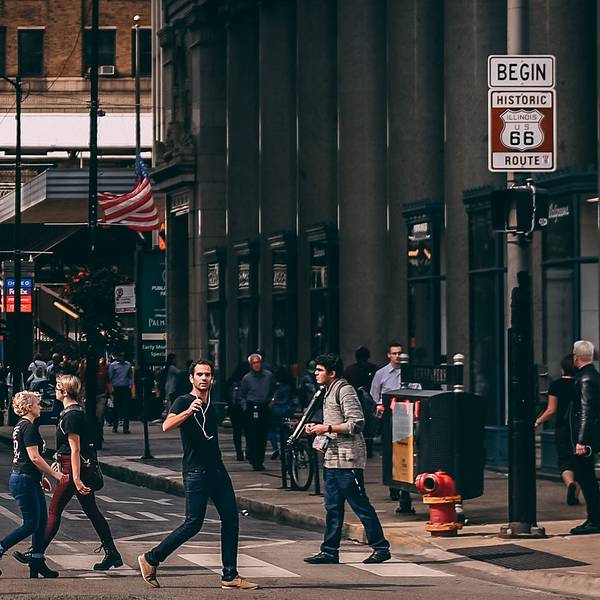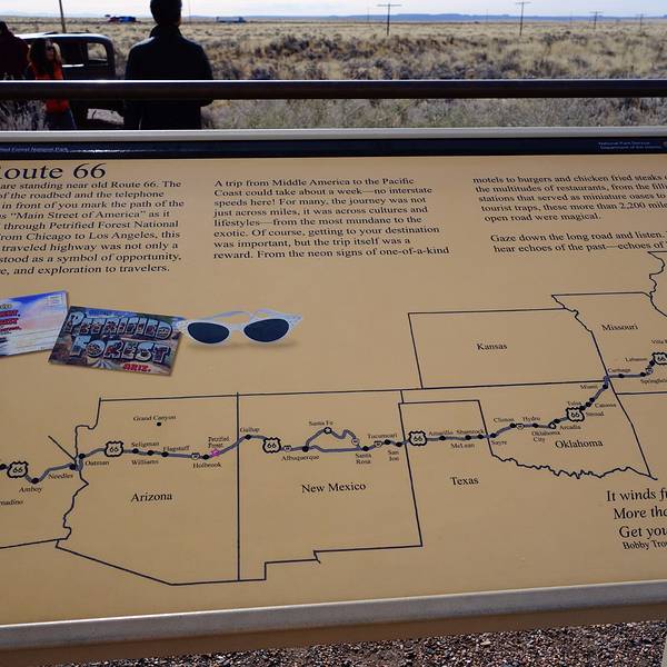 66号公路起点牌位于美国芝加哥,顾名思义是66号公路起点的标志。66号公路(Route 66),被美国人亲切地唤作“母亲之路”。呈对角线的66号公路,从芝加哥一路横贯到加州圣塔蒙尼卡。66号公路全长: 2448英里(约3939公里)。66号公路始建于1926年11月11日,于1938年才宣告全程完工。它起始于伊利诺伊州的芝加哥,穿越密苏里州,堪萨斯州,俄克拉荷马州,亚利桑那州等州,斜贯美国版图一直到加利福尼亚州的洛杉矶(后来延伸至圣蒙尼卡Santa Monica),跨八个州,三个时区,全长2450英里,约合3943公里。在约翰·斯坦贝克的小说《愤怒的葡萄》中,这条公路被称作“母亲路”。于是这个名字就被沿用了。66号公路在1952年又被美国66号公路组织非正式地命名为The Will Rogers Highway。向这位幽默作家致敬的牌子至今还竖立在在加州的圣莫尼卡。