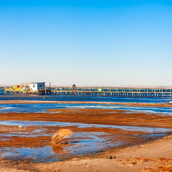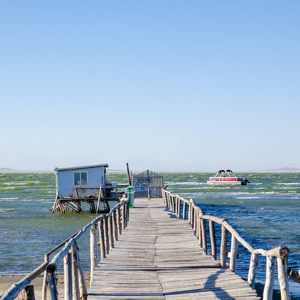 还是坐电瓶车下山,之后走过一个约800米长的木栈桥,就来到了湖边,这里就是碧海银滩景区,近看达里诺尔湖,景色没有在山上看那么美丽,这可能就是距离产生美吧,不过蓝天白云湖水,倒是有点马尔代夫的感觉。在碧海银滩逗留大约一个小时,就出了景区。