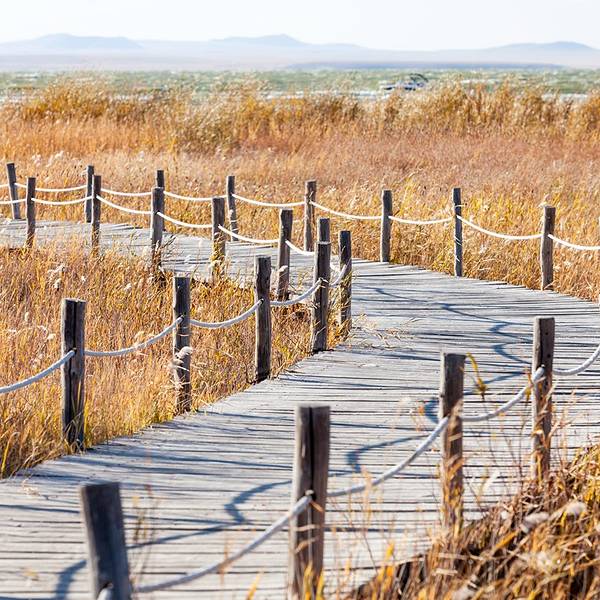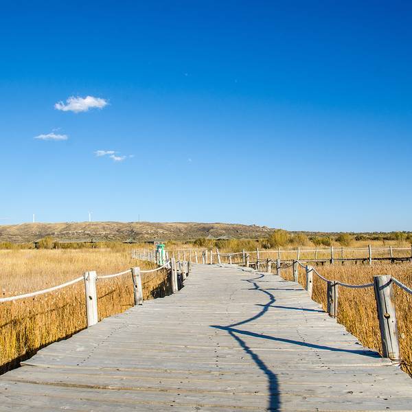 碧海银滩是在达里湖边的一条木栈道,可以亲近的游览诺尔湖。