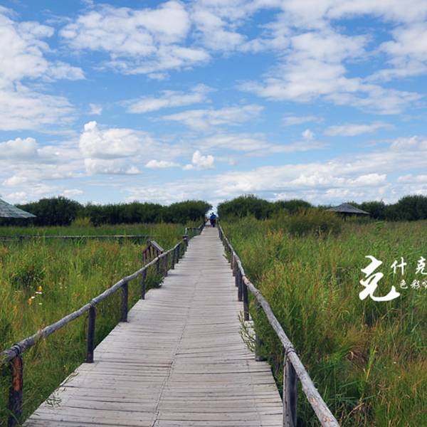 景区内碧蓝的湖水,银色的沙滩,郁郁葱葱的柳灌林木,挺拔俊美的香蒲、芦苇,交相辉映,宛若人间仙境