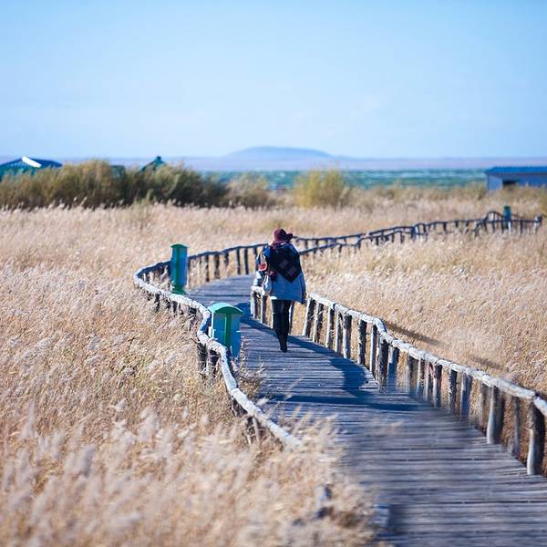 游览完曼陀山,我们乘坐景区观光车来到碧海银滩风景区,碧海银滩同样位于达里诺尔湖的南岸,想要到沙滩边需要穿过很大一片芦苇荡,入秋后的芦苇荡虽不及白桦林那般艳丽,在阵阵秋风中,却别有一番秋的韵味。碧海...