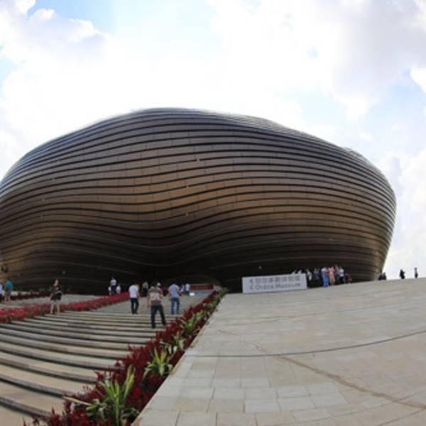 鄂尔多斯博物馆造型独特,外观似一块饱经风雨魔力侵蚀的磐石,象征鄂尔多斯悠久的历史和深厚的文化底...鄂尔多斯博物馆是一所综合性博物馆,位于鄂尔多斯市康巴什新区,于2006年开工建设,占地面积27760平方米,建筑面积41227平方米,为地下一层,地上四层,局部八层。配套有7个总计15000平方米的专业展厅,以及一个...鄂尔多斯博物馆是一所综合性博物馆,位于鄂尔多斯市康巴什新区,于2006年开工建设,占地面积27760平方米,建筑面积41227平方米,为地下一层,地上四层,局部八层。配套有7个总计15000平方米的专业展厅,以及一个同时容纳280人的大型学术报告厅,70余间给类办公室、会议室,2个贵宾接待室,同时还配有地下停车场等多个辅助设施,鄂尔多斯博物馆造型独特,外观似一块饱经风雨魔力侵蚀的磐石,象征鄂尔多斯悠久的历史和深厚的文化底蕴,古铜色的金属外表,记录着鄂尔多斯古老沧桑的草原文明,整座建筑雄浑大气,庄严肃穆,及历史信息与科技为一体,体现鄂尔多斯的历史文化博大精深 展开