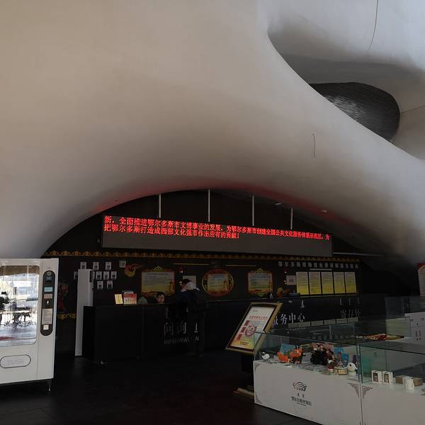 ...,发现它居然因为消防等原因关闭,实在扫兴,很想进入馆内学习下鄂尔多斯的历史和文化,只好下次了…鄂尔多斯博物馆外形有点像鸟巢,很有特点,博物馆临近图书馆,与大剧院遥遥相望,慢慢溜达到博物馆跟前,发现它居然因为消防等原因关闭,实在扫兴,很想进入馆内学习下鄂尔多斯的历史和文化,只好下次了…