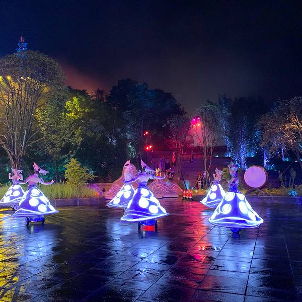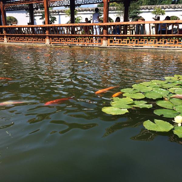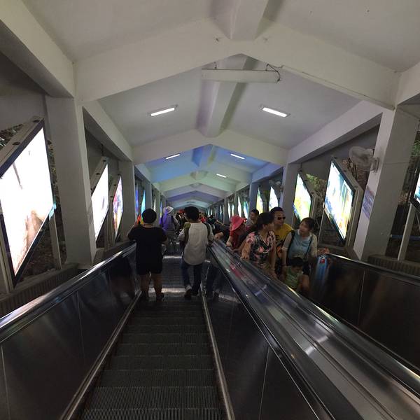 进入主瀑布前先进一个景观园看那荷塘长长的扶梯,50块一个人包上下