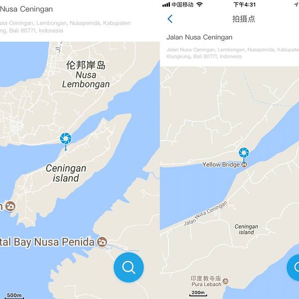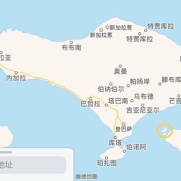 订住宿时出了一个乌龙:原计划订在 蓝梦岛 的别墅竟在 蓝梦岛 旁的金银岛上。塞翁失马,此金银岛非史蒂文森笔下的宝岛,亦非 斐济 的度假胜地,一番惊慌后方知晓金银岛是一个比 蓝梦岛 更小的离岛。▲图中最大的岛为 巴厘岛 ,我用黄色圆圈圈住的是 蓝梦岛 和金银岛。▲把圆圈内放大了看, 蓝梦岛 即为Nusa Lembongan,下方的Nusa Ceningan即金银岛。我们的民宿在金银岛的西南角,绝妙的日落观赏点。 展开
