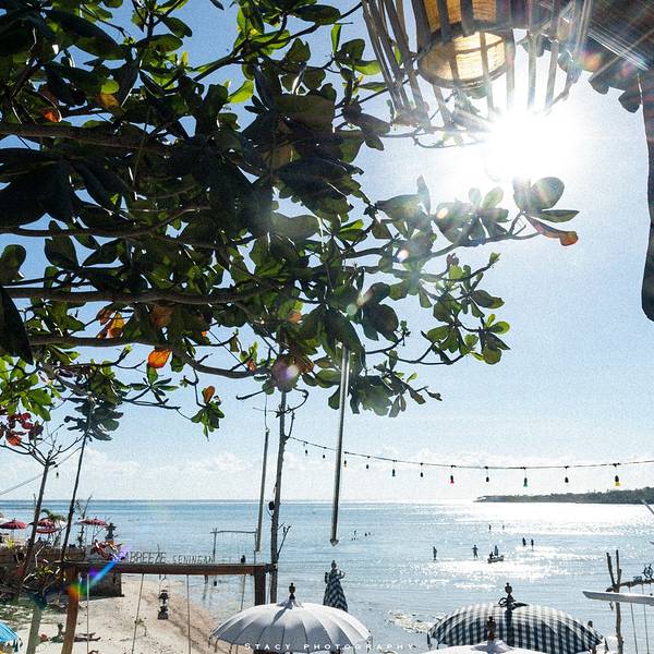 整个餐厅为 巴厘岛 特色竹编风格,这种接近自然的竹子色与眼前这片海搭配在一起也是非常和谐的画面,我又忍不住在这儿多拍了些照片。