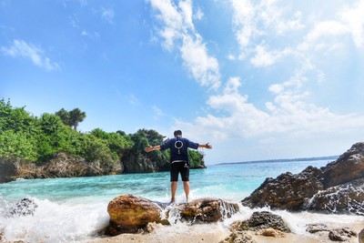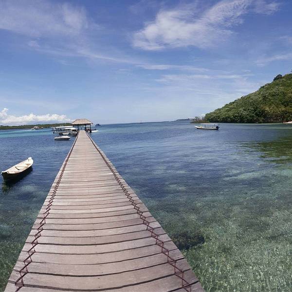 抵达 蓝梦岛 ,亦没有一个码头,船在一个浅滩抵靠,游客赤脚从水中走上岸。在岸上登船离开的游客同我们面面相觑,船员们搬运着行李,周围是铺天盖地的印尼语,一瞬间我竟有荒岛求生的错觉。