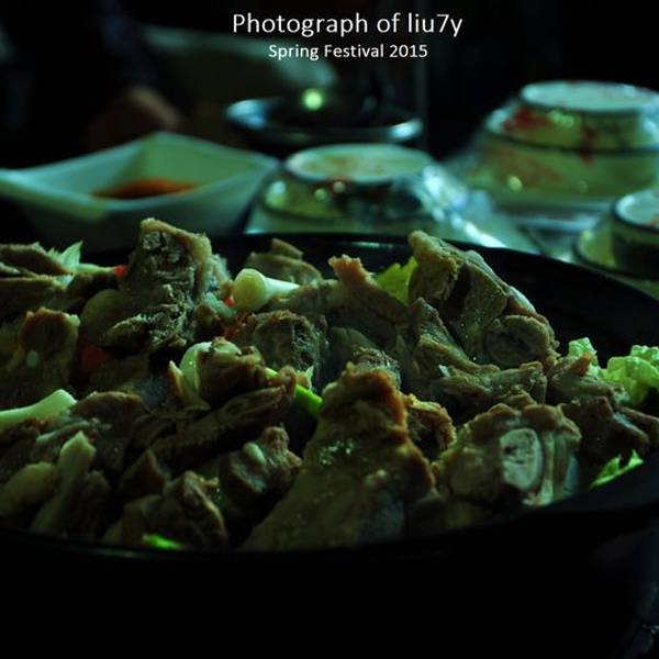 古城大水车出去,搭公车去【象山市场】吃正宗的丽江【腊排骨】,一大盆腊排骨和一大盘子的【纳西烤鱼】,我们三人围着炉子边吃边聊天直吃到4点多。 腊排骨的味道和在家吃的排骨味道还是有所不同,偏腻一些,倒也好吃,只是并不太符合我的菜。个人更喜欢纳西烤鱼,鱼皮烤的焦焦的,灰常好吃~基友把腊排骨旁边一圈豆腐泡都给吃了- -