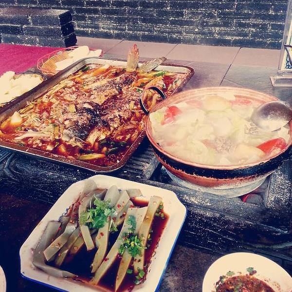 这里吃腊排骨,我觉得最好吃的是烤肉诶,放在一边的烤炉上。 烤鱼不好吃,太辣了。晚饭计划是去吃腊排骨