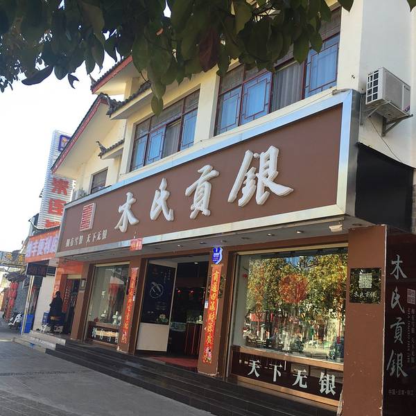 如果认真坐攻略的亲们,一定熟悉象山市场,里面有最有名的腊排骨,之前问了一些当地人,都告诉我离古城远且麻烦,可是当我回去找公交站牌的时候才发现,象山市场就在花马街西面不远处好么腊排骨只能是遗憾了,然后就是丽江有名的雪花银 说实话我是从来不在外面买这些东西的,因为假的太多,去古城全部都是卖雪花银,价格参差不齐,因为今天是侄女的生日🎂等公交无意抬头看到了这家木氏贡银,看店面是蛮正规的,上网查了下说木氏贡银和百岁坊是最靠谱的,且只有在花马街有一家,所以我就进去看并买了一条项链,208元,要问我到底真假,我也不清楚但是会比古城靠谱吧,哈哈.