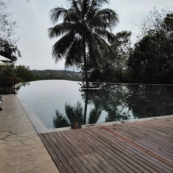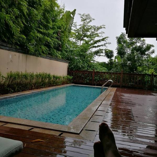 位于七仙岭国家温泉森林公园旁,原始森林里开发出来的酒店,原来叫天上人间,景色还真是天上人间啊,绝对是住过的景色最好的酒店中排名前三,而空气质量就是最好的,满满的负氧离子,让人有点醉氧的感觉!都是独栋的别墅房间,被密林环抱,非常静谧!房间相当宽敞,设施是四星的水平,全屋供应温泉水,床品比较舒服,就是没铺地毯,感觉不够舒适!阳台更是宽敞,泡池位于阳台,能容纳两到三人,直面原始森林,这才是人生的极致体验!