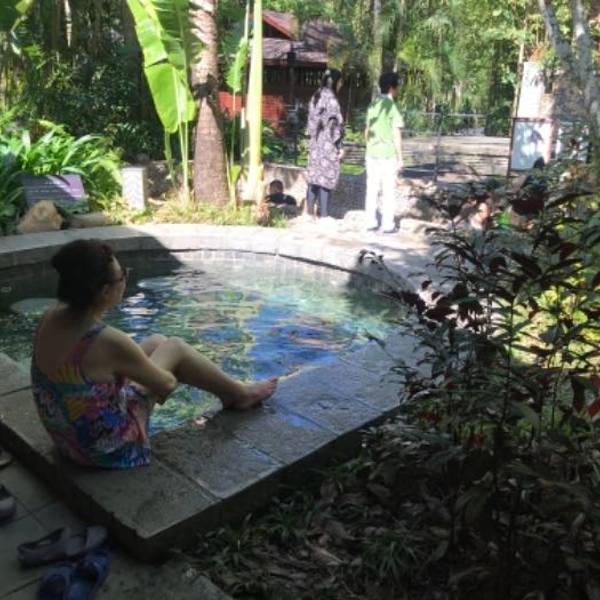 四个池子,一个小鱼池,另两个高温半天下不去,只有一个可以泡,估计人多了就不够了,总体不错,服务到位,都有电瓶车接送,温泉池边的服务员阿姨总有温馨提示
