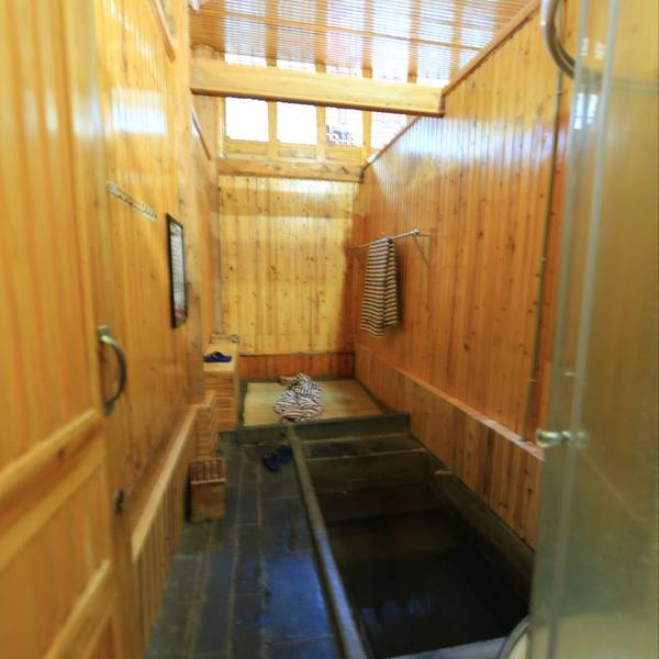 黄瓜箐有公共池泡温泉,男女宾分开,但是必须裸跑,我看了一下环境,还是选择120元一间的单间。这里不提供任何洗浴用品,我只得自己再去买条毛巾。