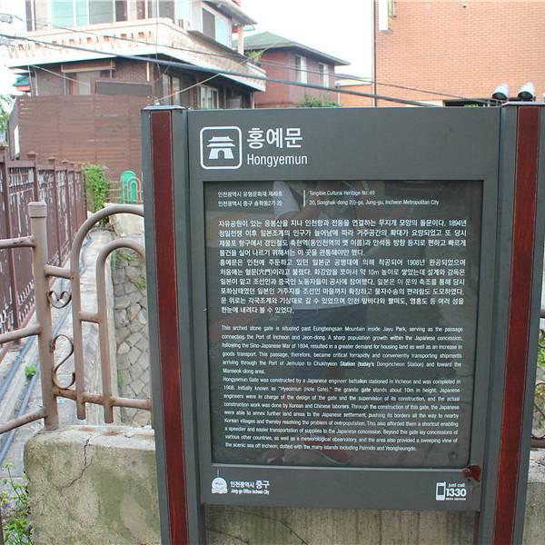 虹霓门(홍예문)是仁川市有型文化遗产第49号,对于韩国人来说,这个门有段很伤心的历史。虹霓门的意思是“像彩虹一样的门”,是当初日本人为了扩大居住空间、解决当时仁川市内南北之间交通不便的问题而特意开山凿成的。关于这里的建造过程,还有很多心酸的故事,比如当初日本人大量使用韩国的劳动力,期间还发生过严重的事故等。新时代的虹霓门已成为一个标志性的地段,是情侣约会的场所。在由赵寅成和宋慧乔主演的韩剧《那年冬天风在吹》中,虹霓门也曾作为重要的取景地而出现过。