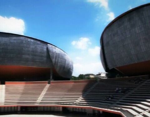 非常有特色的艺术风格的音乐馆,分室内和室外的表演区,在露天的的演出区可以容易几千人,而室内主要...