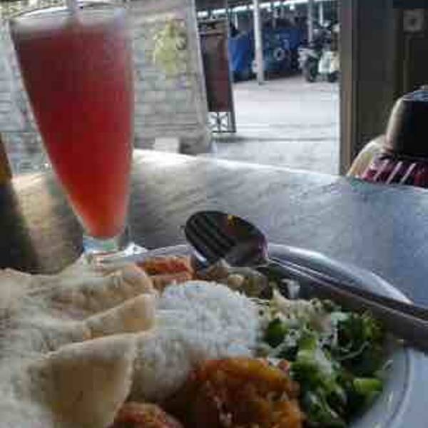Warung Garasi,一个隐藏于一条窄路上的餐厅、一个很有特色的餐厅。萝卜在偶然的机会里走过了这个餐厅,发现这是一个物美价廉吃午餐的好地方。萝卜低头走过了这条街,被这一个家餐厅所吸引。好棒的发现!这里食物即物美价廉又美味。来Nasi Campur,这是一个很值得推荐的餐厅。酒店的装饰的很棒,内部装修很有创意。很漂亮。工业风格,金属吊灯,还有车后灯作为补充灯光,镶嵌螺丝和弹簧的玻璃桌子。在角落里的小型摩托车装饰着,简单朴素的风格。这家餐馆很小,只有一间小屋子,里面是五张大小不一的桌子,屋子和厨房都连着。菜单种类有限,酒精饮品只有啤酒和当地的米酒。食物就在你面前烹饪,很正宗,美味,价格合适。我们午餐吃的是辣椒虾、加多还喝了一大杯啤酒和柠檬汁,一共花了8美元。这里的一大特点就是,会有许多当地的工人们骑着电动车到这里拿外卖,要么是塑料袋装,要么是纸袋装,从这一点也不难看出这里很不错。所以,想要吃上一顿美味实惠的餐饭,而且还和猴林路上的一样正宗,那么就来这里吧!【位置】餐厅位于Monkey Forest 的路上。【提示】餐厅比较小,只有五六张桌子,因此来吃饭要提前预定,最好要提前到。【营业时间】上午十点到晚上十点。
