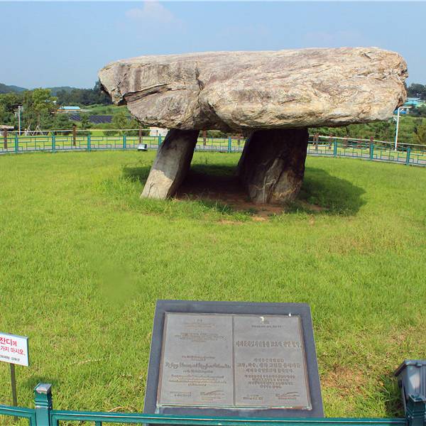 支石墓是韩国青铜器时期代表性的北方式支石墓, 是史前时期石墓的一种。根据专业文献,支石墓分布地区在中东北亚最为集中,而其中心地区就是韩国。韩国已发现上万座支石墓,而江华的支石墓则被指定为世界文化遗产第137号。江华岛地区遗留着先史时期的遗迹和高丽时期的抗蒙遗迹、朝鲜近代的国防遗迹等,可称得上是韩国历史文化的缩影。支石墓公园(고인돌 공원)旁边就是高丽山,以此为中心分布着120 余座支石墓,有极为重要的考古价值。