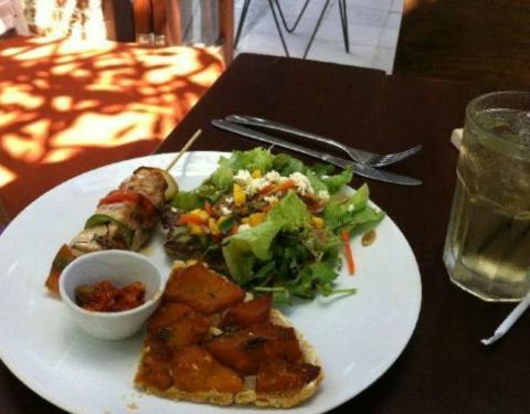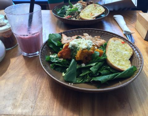 Breakfast is served all day. Try muesli or granola! Moroccan and pumpkin salads were also great! You can add chicken in any of them. They have gluten free and vegetarian dishes. Better to reserve!