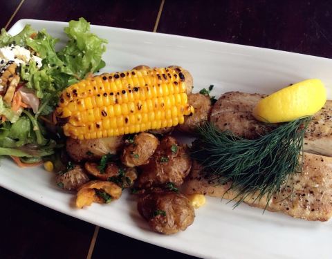 - 烤鱼食材新鲜,味道非常鲜美,配菜更有甜丝丝的烤玉米。绿树掩映中的一家餐厅,将巴厘岛和西式美食结合