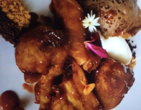 绿树掩映中的一家餐厅,将巴厘岛和西式美食结合。烤鱼食材新鲜,味道非常鲜美,配菜更有甜丝丝的烤玉米。烤猪肉香甜酥脆,配上含有芥末的酱料,入口层次分明。鱼肉汉堡美味多汁,搭配的油炸小土豆更是软糯停不了...