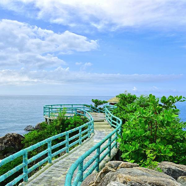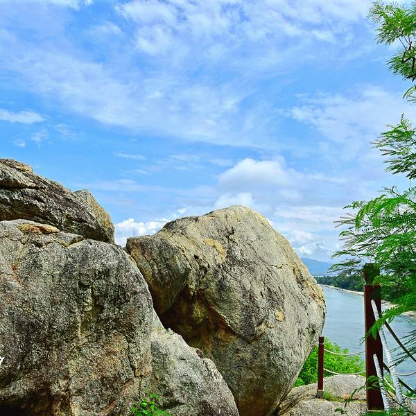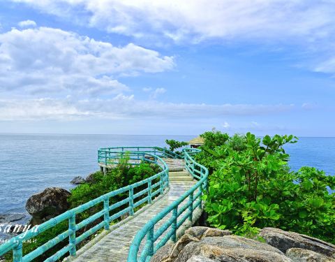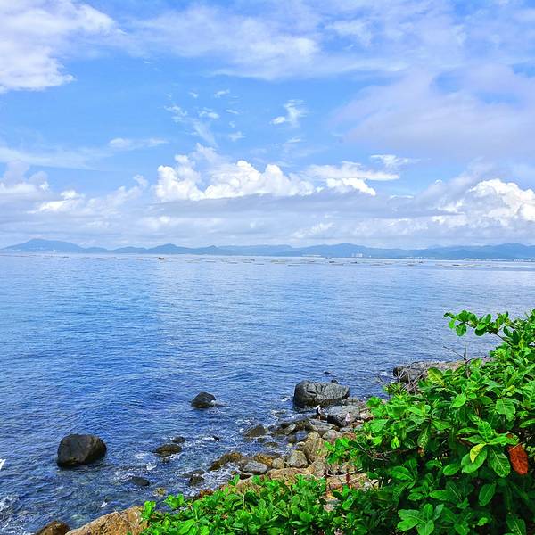 这里拥有最原始的海岛风光,可以欣赏到壮阔的海天...牛王岭是与西岛几近相连的袖珍小岛,一定要坐观光车过去,至少10分钟车程才能到,自行车是不能骑行过去的,乘电瓶车经环岛西路和一条长长的海上栈道便可抵达。