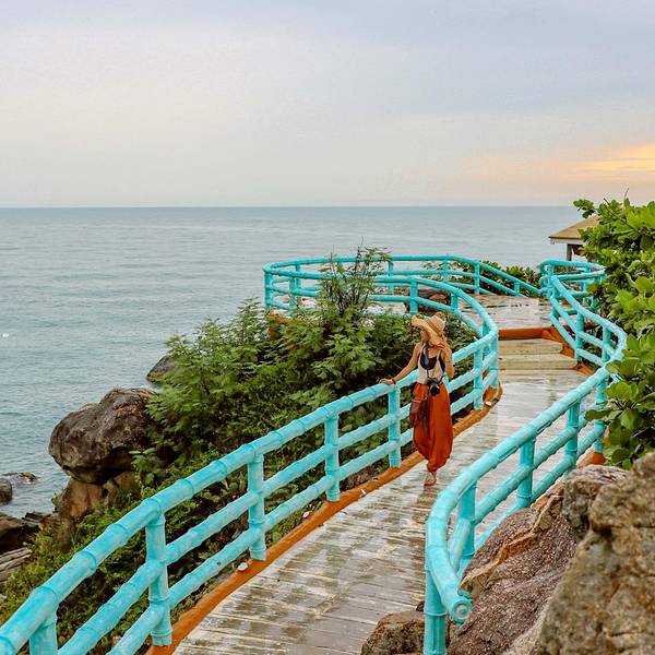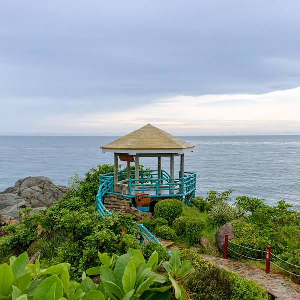 ...岛,牛鼻岭就是散落在西岛西南方向的一座袖珍小岛,后来与西岛链接了起来,成为西岛最美的一道风景线西岛这座海域面积是陆地面积15倍的小岛,距今开发已经相对完善了,提起西岛,可能第一想到的就是海水运动项目了,但除此之外,在西岛的最深处有多了一处最美风景——牛王岛,也称为牛鼻仔岭,因岛屿酷像牛的鼻子...西岛这座海域面积是陆地面积15倍的小岛,距今开发已经相对完善了,提起西岛,可能第一想到的就是海水运动项目了,但除此之外,在西岛的最深处有多了一处最美风景——牛王岛,也称为牛鼻仔岭,因岛屿酷像牛的鼻子,所以取名为牛鼻岭。在最早之前,牛鼻岭与西岛两座独立的小岛,牛鼻岭就是散落在西岛西南方向的一座袖珍小岛,后来与西岛链接了起来,成为西岛最美的一道风景线。牛鼻岭还未完全开发,游客较少,至今风景还算是原生态,清澈的海水肆意拍打着岸边的礁石,去的那天正好下起了下小雨,蒙蒙细雨,但丝毫不影响牛鼻岭的风景。牛鼻岭的海浪比较大,所以大多数地方都会有栏杆围起来,以确保游人安全,尤其是雨天,上下山的时候一定要注意路滑,小心行走。雨滴掉落在海浪中,渐渐的消失在海中,站在岸边,闭上双眼,倾听着天空与大海的对话,这里仿佛是天空之眼,掉落的眼泪,晶莹剔透而又充满仙气,站在悬崖边的亭子上,俯视着整片海域,自己也仿佛就是这海中的一员,随着风浪要拽,这里名为海誓山盟亭。这里还有一座名为海誓山盟的吊桥, 三亚 是一个旅游城市,但更像是一个爱情的城市,每一个地方都充满了满满的爱意与浪漫,都说 大连 是浪漫之都,那 三亚 可以被称为爱情之都,走到哪里都可以感受到浓浓的爱情气息。吊桥的后面有一座金牛,也是这座岛的标志,不过看到它,第一想到了“大黑牛”李晨,还真有点像。牛鼻岭不大,游玩的话,两个小时左右足够了,这里好像是可以走到前面的台阶那里去的,但由于海平面的升高,所以淹没掉了,因为这里的风浪较大,海水涨潮较多,所以不知道以后会不会淹没掉这里的风景。为了这片海域海水的清澈,每天都会有专门的人员,进行垃圾打捞,所以来这里的朋友,一定要注意把带来的垃圾带走,爱护我们身边的每一处环境。 展开
