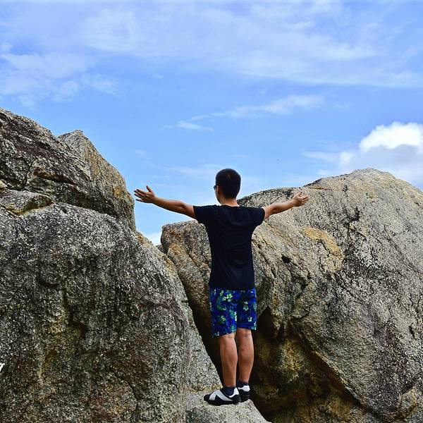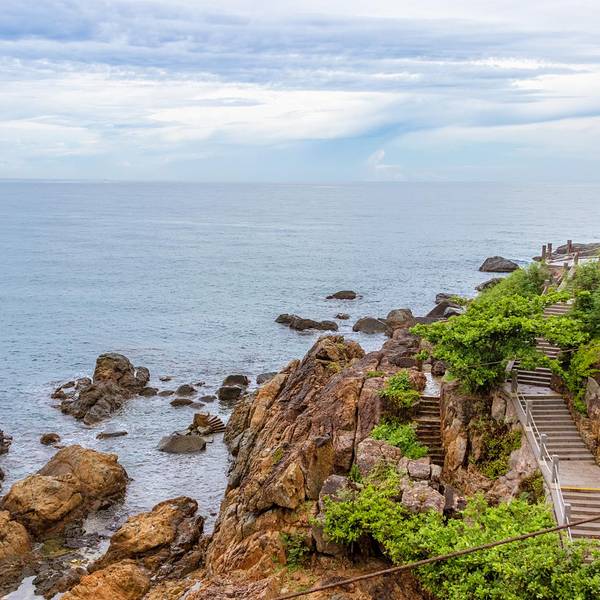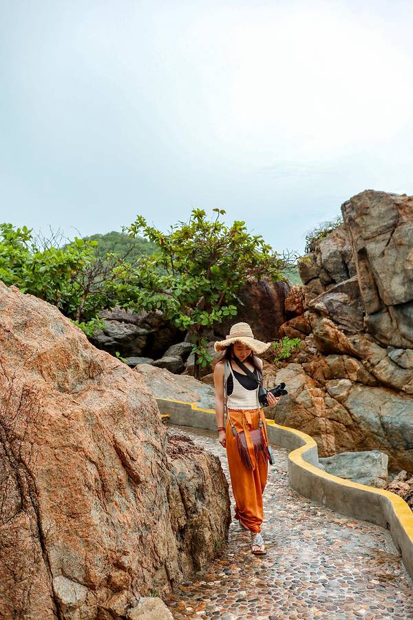 不知是这里是很少有游客游玩,还是说雨天的原因,只有三三两两的游人在这里,少了人群的噪杂,多了一...牛鼻仔岭是藏在西岛上最深处一座小岛,也被称为牛王岭,在最早之前,西岛与牛鼻仔岭是两座完全独立小岛,现如今因为环境的变化,两座小岛最后连接到了一起,也正是这长自然环境的变化,才让我们见识了牛鼻仔岭这...牛鼻仔岭是藏在西岛上最深处一座小岛,也被称为牛王岭,在最早之前,西岛与牛鼻仔岭是两座完全独立小岛,现如今因为环境的变化,两座小岛最后连接到了一起,也正是这长自然环境的变化,才让我们见识了牛鼻仔岭这座美丽神秘的小岛。牛鼻仔岭现在是西岛景区组成的一部分,门票包含在了西岛里面,因为之前去过一次西岛,所以西岛对于自己而言并没有太大的吸引力,又因为是雨天,所以这次就直奔牛王岭,到达西岛后,直接奔向了游客中心,购买牛王岭往返西岛的电瓶车票,价格35元,包含去程和回程,单程大概5分钟的车程,如果体力好的话,可以选择徒步,道路都是已经修建好的公路,所以徒步的路况是没有问题的,而且途中一路风景独好,还有很多拍照的地方,如果喜欢拍照,那一定不能错过了。到达牛王岭后,发现这里西岛俨然两幅天地,西岛应该是一个开发完善,服务设施一应俱全,完全商业化的一个景区,相比较与商业化的景区,还是更倾向于原始的风景,牛王岭有一些人工的建设,但是并没有完全破坏掉这里的原始的风景。这里海浪要比西岛更汹涌一些,浪花拍打着岸边,激起千海浪,海风从海的另一个尽头吹来,彷佛带着无尽的思念,飘向这里,然后在你的耳边轻声,像你诉说他的款款深情,海洋垃圾应该是对于海洋爱护者最苦恼的事情,不管怎么整治,始终还是垃圾重现,而在牛王岭,这座刚开发没多久的小岛,依然存在着这种现象,我们去的时候,刚好看到海中的有工作人员在海里捡拾垃圾,看到这一幕,不禁的感慨,希望我们可以一同守护我们的美好家园。不知是这里是很少有游客游玩,还是说雨天的原因,只有三三两两的游人在这里,少了人群的噪杂,多了一份雨天的安静,超喜欢这种在雨天的感觉,撑起雨伞,站在海岸上,看着浪花在海里肆意的翻滚着,慢慢的和这里的一切融为一体。牛王岭听他的名字就知道他跟山有关,他是在西岛边上凸起的一座小岛,岛上已经有修建好的山路,顺着修建好的山路,即可到达这座岛的最高点,这座岛上有一座可以俯瞰整片海的亭子——名为海誓山盟亭。 展开