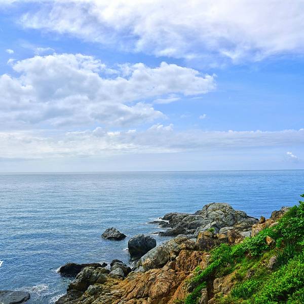 这里拥有最原始的海岛风光,可以欣赏到壮阔的海天一色、鬼斧神工的礁石景观以及星罗棋布的军事遗迹。牛王岭是西岛的最高处,登此岭可观望四周,视野非常好,海边有不少礁石,是来听潮水拍岸声音的好地方。牛王岭上建有曲桥回廊,亭台石雕,岭顶有一雄伟雕塑叫金牛望海,登上去一点不费力,可以一览这片海域的全景。