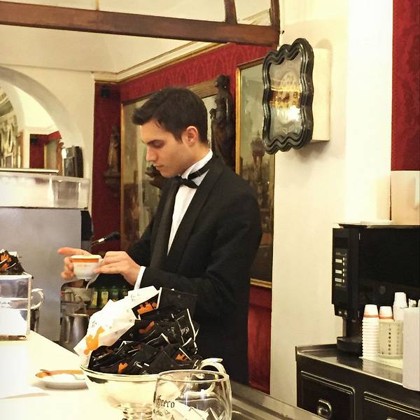 又是随便逛到的百年咖啡老店!久负盛名,拜伦和李斯特也在里面坐过。回家看别人攻略说有点贵……那是因为你们坐下来了哟亲= =这种店的桌位费都很辣手!我决定和当地人一样站在柜台边上慢悠悠喝!一边还可以欣赏英俊的咖啡师帅哥><