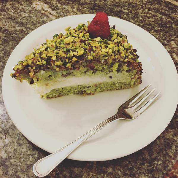 一般推荐。 我点了巧克力咖啡(就是有巧克力粉的意浓)和开心果蛋糕。开心果蛋糕