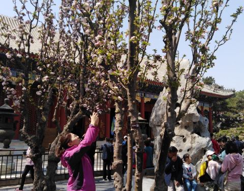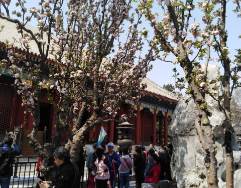 北京的海棠,特别是西府海棠,开的更是尤其灿烂,即使是花香来的客人,也不能不为这样群情共怒的开放而感动要说这个畅观楼里面的玉兰树,也是名声在外,每年到这里赏玉兰的人总是络绎不绝,虽然玉兰的花瓣有时也很素雅,特别是白色的玉兰更为犹显圣洁和追思,所以玉兰树就因为没有绿叶扶持而过于显得突出,甚至是突兀,...要说这个畅观楼里面的玉兰树,也是名声在外,每年到这里赏玉兰的人总是络绎不绝,虽然玉兰的花瓣有时也很素雅,特别是白色的玉兰更为犹显圣洁和追思,所以玉兰树就因为没有绿叶扶持而过于显得突出,甚至是突兀,特别是玉兰花的花型过于大了一些…… 而院内的海棠则不同,当万朵海棠怒放的时候,开的一片灿烂,一片雪海,一片心花怒放,开的人可以感动的留下喜泪。北京的海棠,特别是西府海棠,开的更是尤其灿烂,即使是花香来的客人,也不能不为这样群情共怒的开放而感动。 展开